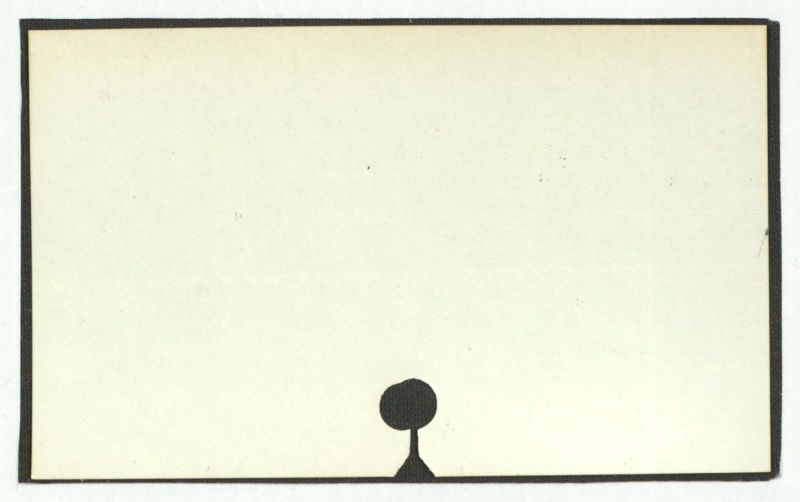 Thereisnotextpresentintheimage. Theimageconsistsofaminimalistblacksilhouetteagainstabeigebackgroundwithablackborder, and there are no discernible words or printed text elements.