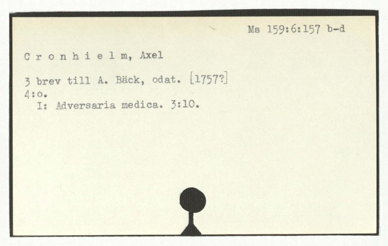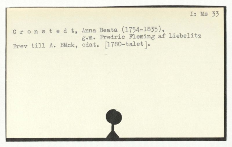 Brev till A. Bäck, 2 odat. [L:a 1760?]