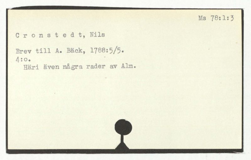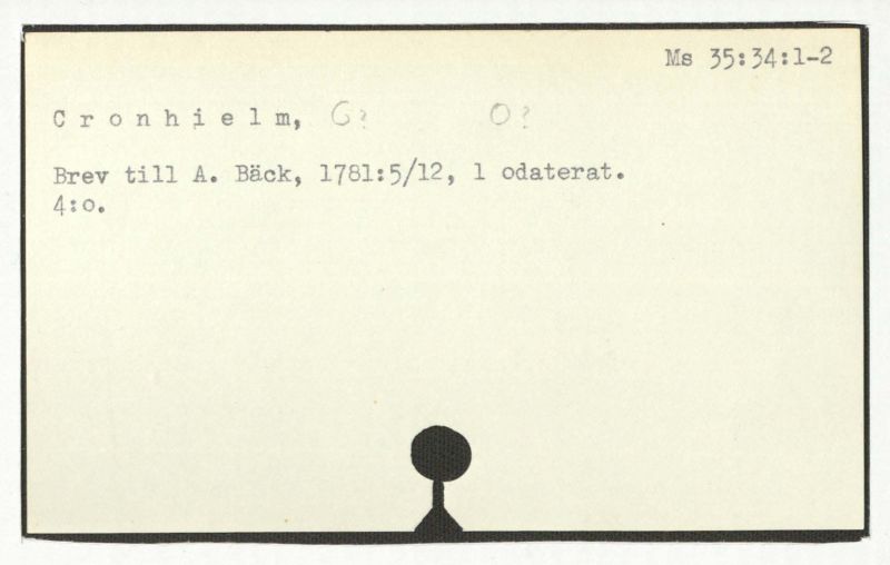 Brev till A. Bäck, 1781:5/12, 1 odaterat. 4:o.