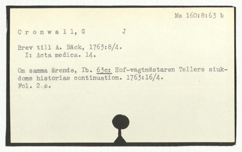Om samma ärende, Ib. 63c: Hof-vagtmästaren Tellers siuk-doms historias continuation. 1763:16/4.