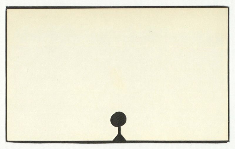 Thereisnotextintheimage. Theimagecontainsaminimalistdesignwithablackrectangularborder, a beige interior, and a small black silhouette at the bottom.