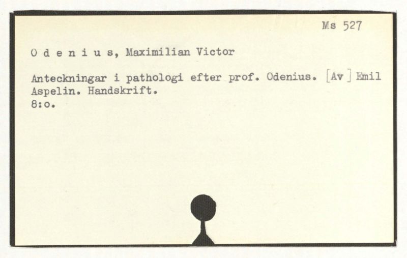 Anteckningar i pathologi efter prof. Odenius. [Av] Emil Aspelin. Handskrift.