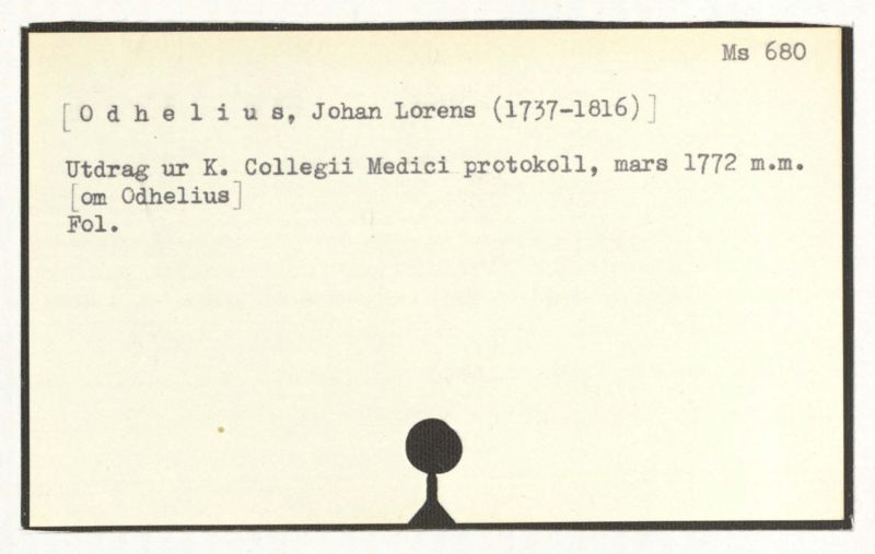 Utdrag ur K. Collegii Medici protocoll, mars 1772 m.m. [om Odhelius]