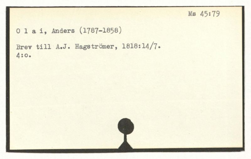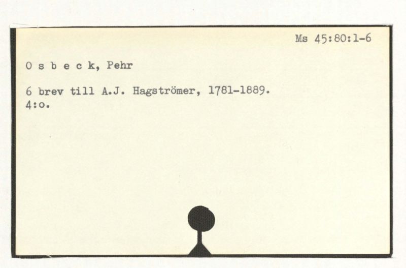 6 brev till A.J. Hagström, 1781-1889.