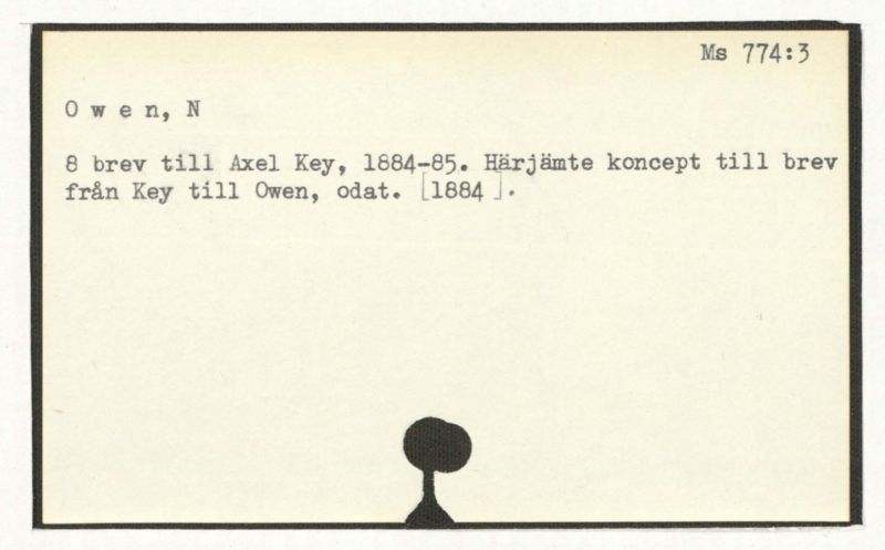 8 brev till Axel Key, 1884-85. Härjämte koncept till brev från Key till Owen, odat. [1884].