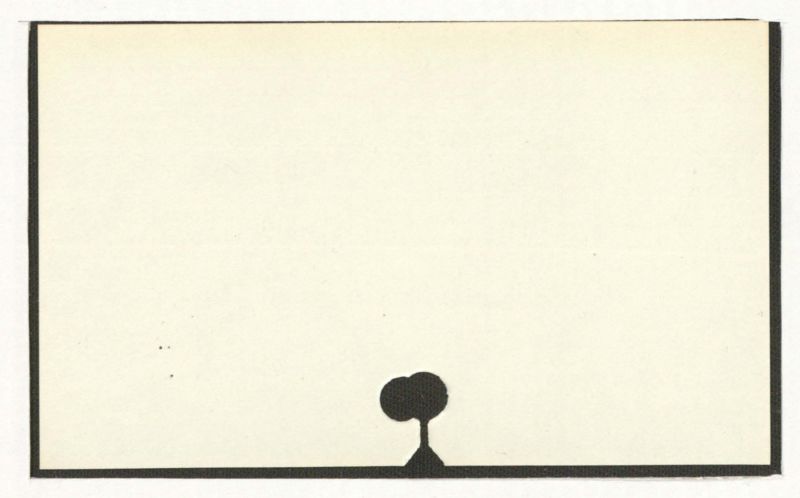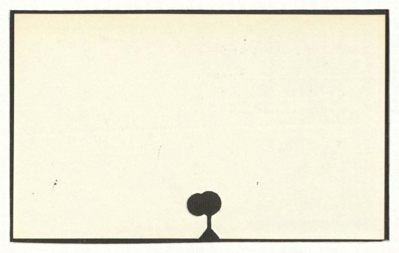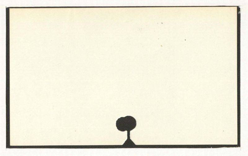 There is no visible text in the provided image. The image consists of a light-colored background with a black border and a black silhouette of a tree at the bottom.